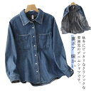 デニムシャツ レディース 長袖 ブラウス ゆったり カジュアルシャツ トップス 裏ボア お洒落 暖かい 羽織り 体型カバー 韓国風 春秋冬 防寒 保温 あったか お出かけ 通勤 通学 ポケット付き 着痩せ 送料無料