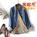 デニムシャツ レディース 裏ボア シャツ ブラウス 裏起毛 トップス 羽織り 前開き 裏ボア 暖かい 防寒 もこもこ カジュアル アウター 秋冬