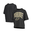 プレスボックス レディース カットソー トップス Women's Black Purdue Boilermakers Nelson Arch Over Logo Waist Length Oversized Slub T-Shirt Black