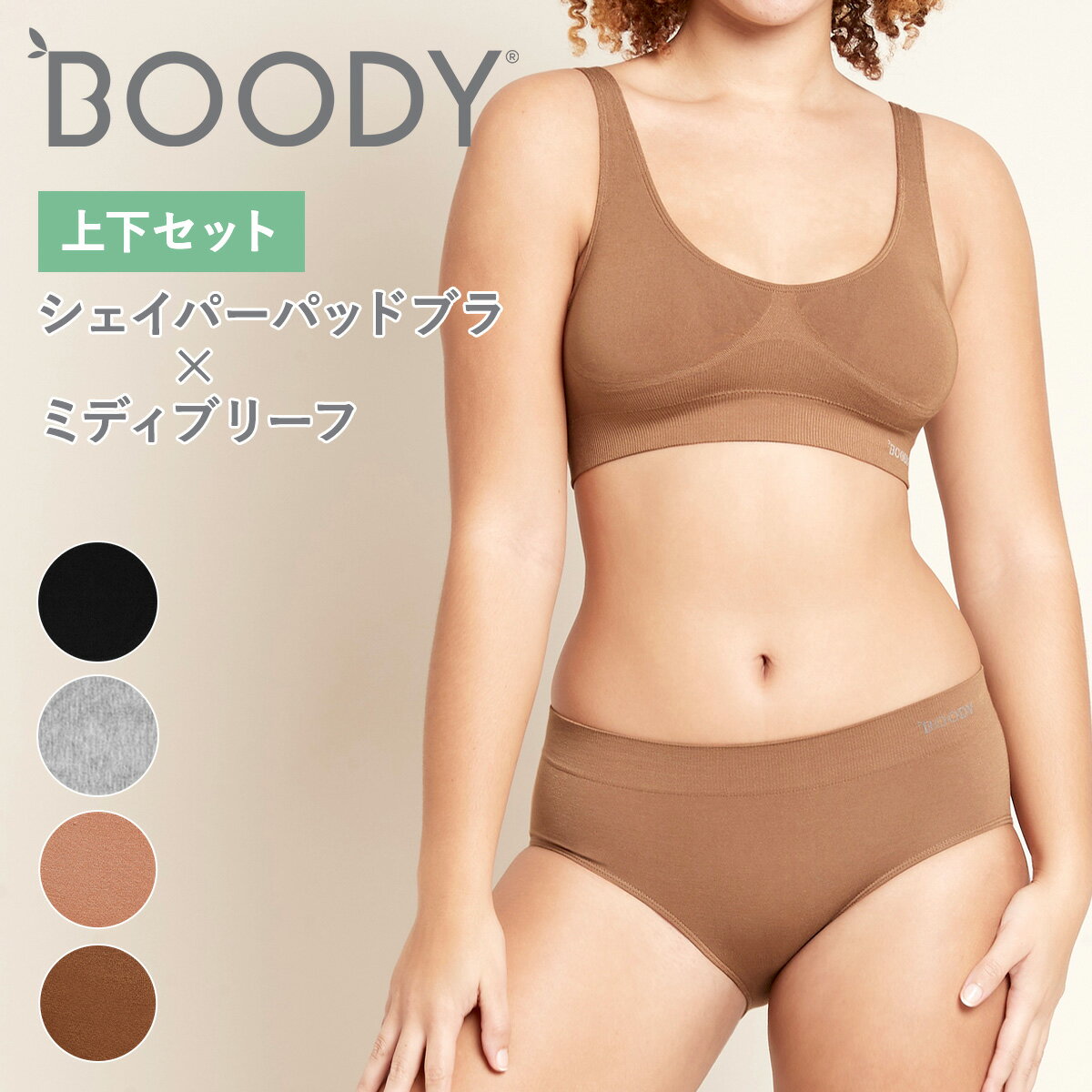 【上下セット】BOODY ブーディ ベーシック シェイパーパッドブラ×ミディブリーフ レディース パッド付ブラ ブラジャー ショーツ インナー 女性 下着 シームレス オーガニック 竹 竹布 敏感肌 竹繊維 インナー 通気性 吸湿性 抗菌 サスティナブル シンプル 送料無料 ◇◇