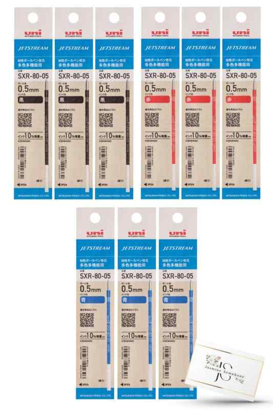三菱鉛筆 ボールペン替芯 ジェットストリーム 多色多機能 SXR-80-05K 0.5mmボール【替芯3色×各3本 合計9本 内訳:黒×3本,赤×3本,青×3本】JasmineSymphonyオリジナルおまけ付アソートセット 油性ボー
