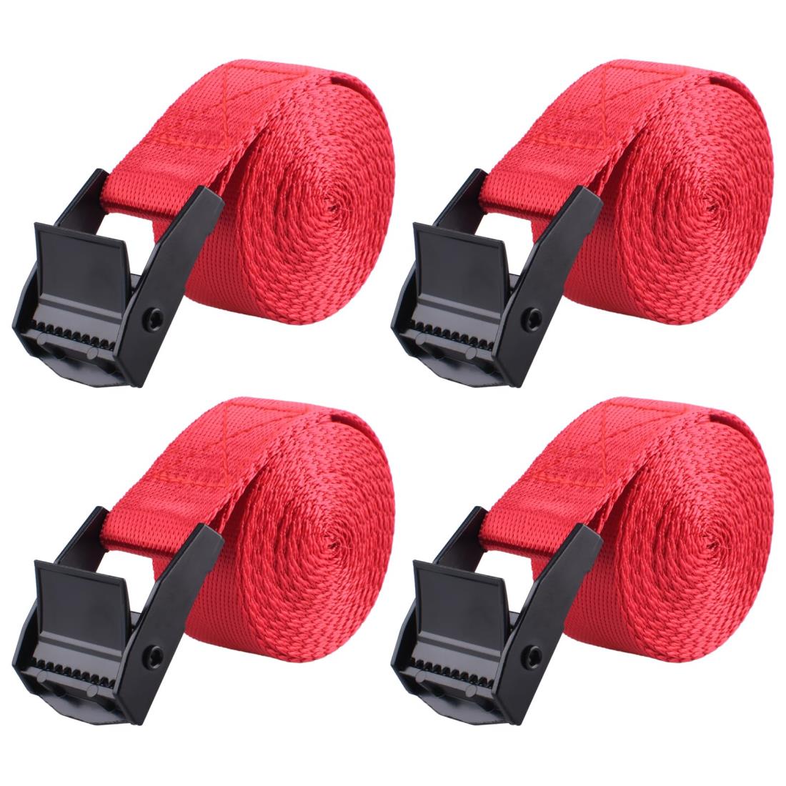 荷締めベルト 荷締バンド ラッシングベルト 多用途 固定ベルト タイダウンベルト 結束バンド 梱包 ベルト 固定バンド 荷締機 自動車ベルト バイクベルト Lashing Strap 地震対策グッズ (7# レッド - 4本, 3m)