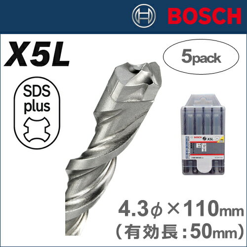【ゆうパケットでの発送】【BOSCH】(ボッシュ)[X5L 043 110/5]NEWSDSプラスビットX5L4.3φ×110mm(有効長:50mm)【5本入りのお買い得セット!】長寿命と真円を極めた革新的なテクノロジー