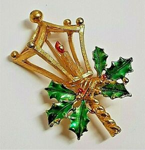 【送料無料】ジュエリー・アクセサリー ヴィンテージゴールドブローチランタンブギーコレルメタルbijou vintage broche lanterne bougie signe corel metal dore teinte rouge vert f5
