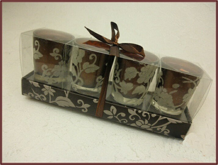 ブージー・ヴェール -bougie verre-フェルトコレクショングラスキャンドルSサイズ4Pセット(1個300円!)ローズの香り☆ブラウンおしゃれなフェルト地をあしらったグラスアロマキャンドル♪大切なイベント時にお使い下さい!