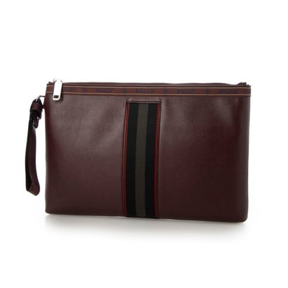 高級感溢れるクラッチバッグ。深みのあるカラーと中央のストライプデザインが特徴です。手首に掛けられるストラップ付きで持ち運びが便利です。スマートなサイズ感ながら必要なアイテムをしっかり収納可能です。・A4対応(22×31cm):×・長財布(10×20cm):○・ペットボトル横向き(500ml):×・ペットボトル縦向き(500ml):×【素材】皮革の種類:牛革こちらはアウトレット品です。主にはシーズン落ちの新品になりますが、中には細かな傷やシワ、若干の色落ち等がある場合がございます(訳あり品を除く)。1/FREE : 【重さ】330g / 【高さ】21cm / 【幅】31.5cm / 【底マチ】2cm