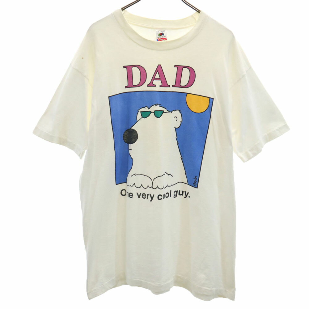 古着 FRUIT OF THE LOOM フルーツオブザルーム 90s USA製 イラスト プリント 半袖 シングルステッチ boynton Tシャツ XL ホワイト系 ボイントン オールド ヴィンテージ メンズ 【中古】