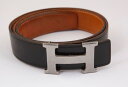 【最大3万円OFFクーポン対象!〜10/27】HERMES エルメス Hベルト メンズ #65ブラック ダークブラウン レザー シルバー金具 □F本物 ブランド プレゼント ブランド プレゼント ウェスト62-68cm 中古 h1001129