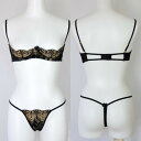 【NO BRAND】ブラック&ゴールド刺繍 セクシーランジェリー セット 28478 <クロッチオープン オープンバスト コスプレ 過激 ガーターベルト>