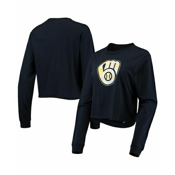 ニューエラ レディース Tシャツ トップス Women's Navy Milwaukee Brewers Baby Jersey Cropped Long Sleeve T-shirt Navy