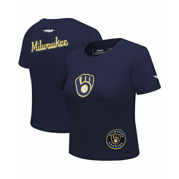 プロスタンダード レディース カットソー トップス Women's Navy Milwaukee Brewers Game Day Classics Baby Doll Cropped T-Shirt Navy