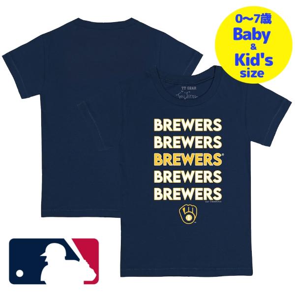 【送料無料】【ベビー・キッズサイズ(0-7歳用)】 MLBオフィシャル ベビー キッズ 子供用Tシャツ 半袖トップス Navy ミルウォーキー・ブリュワーズ Milwaukee Brewers Stacked T-Shirt