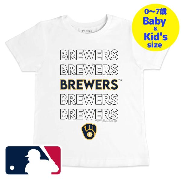 【送料無料】【ベビー・キッズサイズ(0-7歳用)】 MLBオフィシャル ベビー キッズ 子供用Tシャツ 半袖トップス White ミルウォーキー・ブリュワーズ Milwaukee Brewers Stacked T-Shirt
