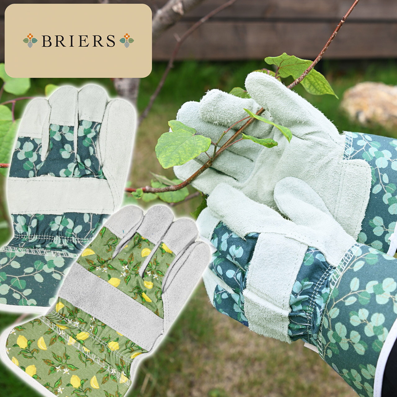 ■製品仕様 イギリスブランド サイズ: M レモン、ユーカリ、花 L ネイビー ※ネイビーのみLサイズです 材質:山羊革/綿、スポンジ、ポリエステル 特長: ・手のひら側にはヤギ革を使用しております。 ・ヤギ革は薄くて柔らかいので操作性を損なうことがなく作業が行え、耐穿孔性(トゲなどの先端が刺さりにくい)、耐摩耗性にも優れたガーデニングに適したレザーです。(トゲが刺さらないことを保証するものではありません) ・甲側には薄いスポンジがあるため柔らかな着け心地です。 ■注意事項 ・パソコン画面上と実物では、多少色合い等が異なって見える場合がございますことを予めご了承下さい。 ・海外製品では、多少の擦れ・傷は許容範囲内として製造・流通されていることが多いようです。 そのため、商品に多少の擦れ・傷がみられることがございますが、予めご理解頂き、ご愛用いただけますよう、お願い申しあげます。ガーデナーやDIYユーザー達に愛用されているイギリスのブランド「Briers (ブライアーズ)」 庭作業やDIY、日常作業に最適なグローブやブーツ、シューズを展開。