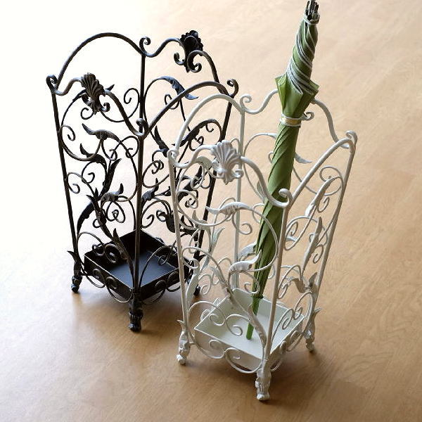 傘立て アイアン おしゃれ アンティーク 玄関 傘たて かさ立て ブロンズ ホワイト 白 四角 可愛い かわいい クラシック ヨーロッパ エレガント デザイン 傘収納 かさたて 受け皿付き 傘スタンド アンブレラスタンド アイアンの傘立て アラベスク2カラー