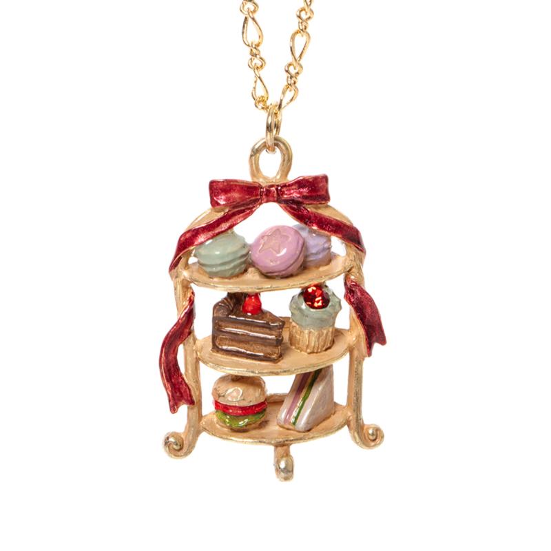 説明アフタヌーンティーの優雅で楽しいくつろぎのひと時を再現したネックレス。 華やかにリボンで飾られたケーキスタンドには、上段にはマカロン、中段はチョコレートケーキとマフィン、下段はセイボリーのミニバーガーとサンドイッチが並べられています。 美味しそうでつい目移りしてしまいそうなラインナップが魅力のアクセサリーです。生産国日本サイズモチーフサイズ:縦約29mm×横約21mm チェーン:約45cm+アジャスター約5cm素材ピューター、カットガラス注意事項・こちらの商品はメーカーの職人によってハンドメイドで作られております。そのため、ひとつひとつの塗や表情が微妙に異なる繊細な作りとなっております。 手作りならではの温かみのある表情をお楽しみください。 ・閲覧時のモニター環境によりましては実際の商品と若干違うお色味に映ることもございます。 ・不良品は《お手元に届いてから8日以内のもの》に限り、ご対応させていただきます。 ・着用後の返品等は承りかねますので、ご了承ください。 ・他サイトと在庫併売品のため、在庫数が表示されていても、ご注文が集中した際など在庫をご用意できない場合がございます。