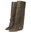 【送料無料】 パブリックデザイア レディース ブーツ・レインブーツ シューズ Public Desire Levitate pointed toe knee boots with vintage heels in distressed brown Distressed