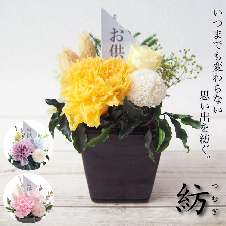 \10%OFFクーポンあり/ お盆 お供え 花 仏花 アレンジメント プリザーブド フラワー 造花 プリザーブドフラワー 御供 御供え花 ギフト 仏壇用 ミニ お彼岸 供花 お悔やみ メッセージ 贈り物 初盆 法要 法事 アートフラワー 水やり不要 / 紡(つむぎ) [rcp]