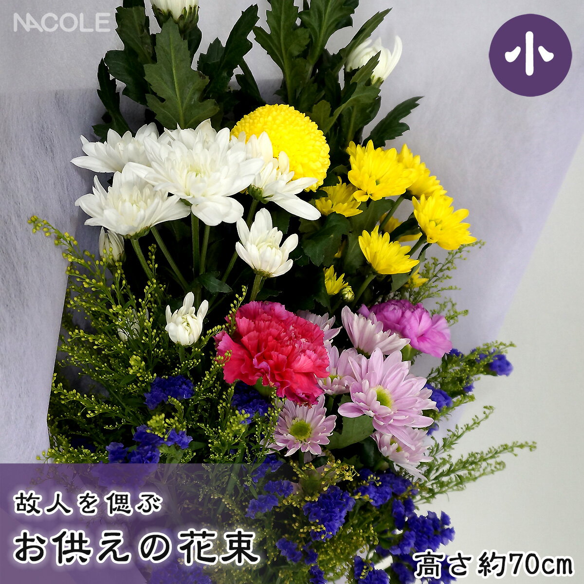 故人を偲ぶお供えの花束。「NACOLE」がご注文を受けてから心を込めてお作りする仏事用の生花アレンジメントです。イミテーション(造花・葉)は一切使用しておりません。花材にこだわり、厳選し、丁寧に仕上げております。お寺によっては1対でご用意する場合もございますので事前にご確認して頂く事をおすすめします。▼セット内容季節により花材の種類、色目等変わる場合がございます。イメージ写真をご参考にしてください。▼サイズ(約)高さ70cm×幅30cm※ラッピング・リボンの指定はご対応できかねます。選択された場合でも、フラワーギフト専用BOXにてお届けいたします。※写真はイメージです。植物につき季節によって色、形が異なる場合がございます。予めご了承ください。※のし・ラッピング非対応※お買い物マラソン ワンダフルデー ポイント2倍 ポイント5倍 ポイント10倍 などのキャンペーンは楽天会員様のみ有効となりますのでご了承ください。ギフトに困ったらこちらをクリック『熨斗(のし)の書き方』≪慶事≫■蝶結び---------------何度繰り返してもよいお祝い事に使用します。例:出産内祝い 出産祝いのお返し 出産祝い お中元 お歳暮 お祝い 新築祝いのお返し 入学祝い 入園祝い 卒業祝い 卒園祝い 合格祝い 就職祝い 成人祝い 入学祝いお返し 入園祝いお返し 卒業祝いお返し 卒園祝いお返し 合格祝いお返し 就職祝いお返し 成人祝いお返し 初節句▼表書き無し(慶事結婚以外)・御祝(結婚以外)・御出産祝い 御入学祝い 御就職祝い 御新築祝い 御昇進祝い 御昇格祝い 御誕生日祝い 御礼(結婚以外)・内祝(結婚祝い 快気祝い以外) 引越し内祝い 新築内祝い 開店内祝い 御中元 お中元 暑中御伺い 暑中御見舞い 暑中見舞い 残暑御見舞い 残暑お見舞い 残暑見舞い 遅れてごめんね 母の日ギフト 父の日ギフト 敬老の日ギフト 成人式 祝成人 成人祝い 七五三祝い 粗品 御餞別 寸志 記念品 贈答品 御歳暮 お歳暮 御年賀 お土産 御土産 土産 拝呈 贈呈 謹謝・・・■結びきり10本----------一度きりであってほしい場合に使用します。(婚礼関連のみに使用)例:引き出物 名披露目 結婚内祝い 結婚祝いのお返し 結婚祝い▼表書き無し(結婚)・御祝(結婚)・御結婚御祝い 寿・壽・御礼(結婚)・内祝(結婚)■結びきり--------------一度きりであってほしい場合に使用します。例:快気祝い(病気見舞い)・快気内祝い 病気見舞いのお返し 退院祝い▼御見舞(快気)・快気祝い 快気内祝≪弔事≫■黒白結び切り(ハス柄)----弔事に使用します。(法要/法事)▼志 粗供養 供養志 御礼 茶の子 謝儀 四十九日 一周忌 三回忌※その他ギフト関連キーワード命名 赤ちゃん ノベルティー 景品 写真 かわいい カワイイ かっこいい カッコイイ 美味しい おいしい 参加賞 サンクスギフト ウェルカムギフト ブラックフライディー クリスマスプレゼント バレンタイン バレンタインデーギフト スイーツ ホワイトデーギフト ワンダフルディ テレワーク リモートワーク ステイホーム 冬ギフト 夏ギフト お土産 御土産 土産 お彼岸 御彼岸 四十九日 一周忌 三回忌 自粛見舞 感謝 送品 引出物 通学 通勤 料理 幼稚園 小学校 中学校 高校 入学祝いのお返し 就職祝いのお返し 会社 退職祝い 転勤 定年退職 企業 法人 せどり 活動費 運営費 サービス品 子供の日 梅雨 お盆休み 夏休み当店おすすめの注目商品/当店人気No.1商品 モンドセレクション最高金賞受賞 飲む温泉水「観音温泉水」/全国送料無料(北海道送料無料〜沖縄送料無料) RINGBELL(リンベル)カタログギフト/ インスタ映え 結婚・出産内祝いに 女性に人気のパスタギフトセット/贈り物に悩んだらこれスターバックスコーヒーギフト/レンジで温めるだけ!豪華なネタで作った笹蒸し寿司の詰合せ/出産祝いにkaloo(カルー)その他 DADWAY(ダッドウェイ)正規品ベビー・キッズマタニティグッズも充実/空間に素敵なエッセンス インテリア・収納・雑貨おしゃれな家具▼店舗名ギフトショップナコレ楽天市場店(インターネット通販ショップ)▼所在地静岡県沼津市下香貫島郷2977-1▼決済方法クレジットカード決済・楽天バンク決済・銀行振込み・代金引換(代引き)・セブンイレブン決済・ローソン決済・NP後払い・auかんたん決済贈る人も使ってみたくなる詰め合わせです。ナコレ人気NO.1ギフトシリーズ!こちらも人気のおしゃれギフト