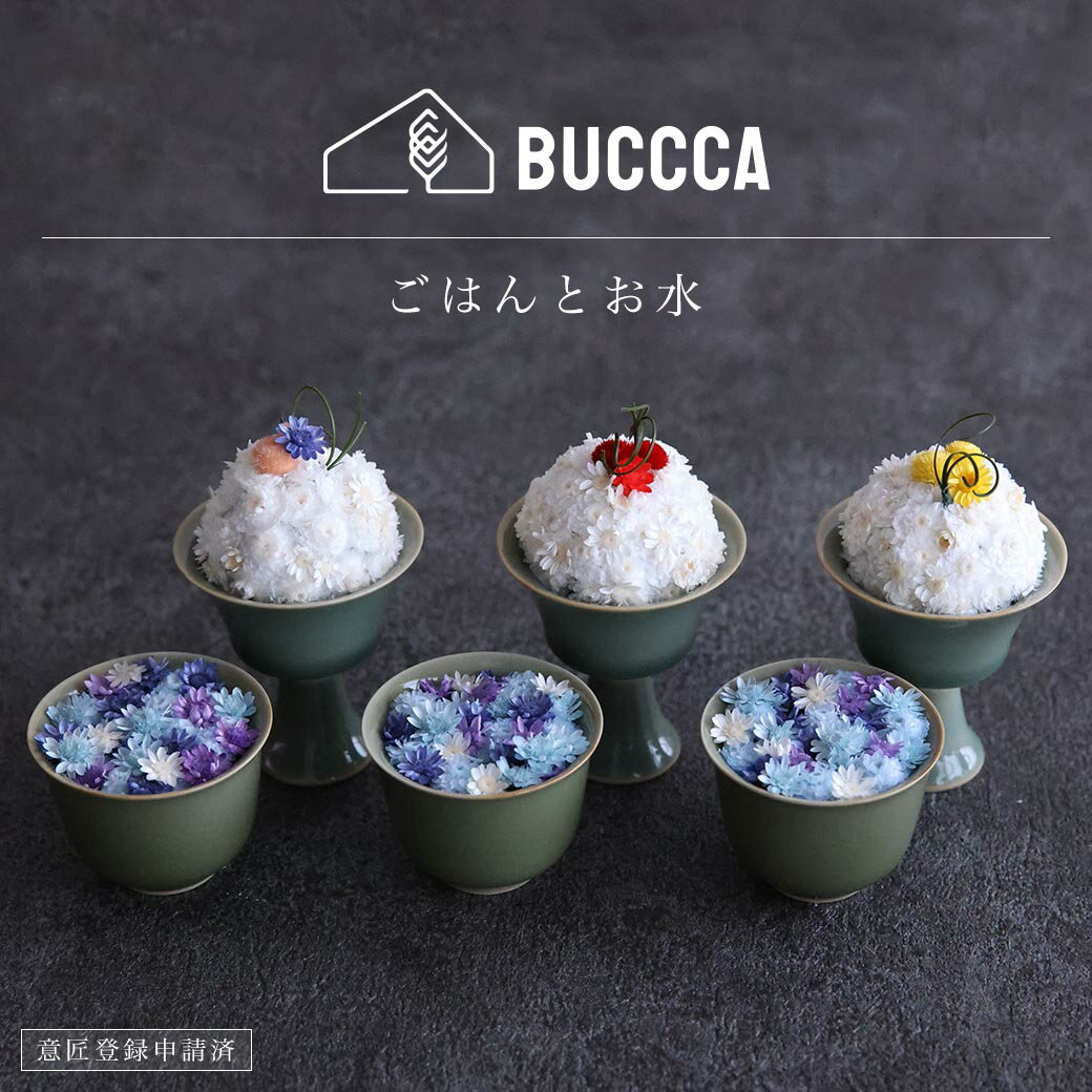 よく一緒に購入されている商品 仏具 森林香 ツイン 仏飯器 茶湯器 蝋燭台17,600円 お供え 仏花 ホコリが付かない BUCCC11,000円 仏具 セット 仏具セット モダン仏具セット 9,000円 ごはんとお水 商品説明 【 BUCCCAの仏飯 -お花のごはんで心地よく- 】 本当のお花を特殊加工した枯れることないプリザーブドフラワーだから長持ち、お手入れも夏場の虫も安心 お仏壇や故人の写真にご飯をお供えする。 大切な人だからこそ、私たちも口にするものをお供えしたいという気持ち。 BUCCCAは仏飯をお花で、そんな温かい心をカタチにしました。 サイズ ごはん:花器の最大Φ約60mm × H90mm お水:花器の最大Φ約55mm × H40mm 製造 京都(宇治) 備考 ※メイン以外の花材は、入荷状況等により種類が変わる場合がございます。 ※実寸と表記サイズには、若干差異が生じる場合がございます。 ※閲覧環境の違いにより、実際の商品と色味が異なって見える場合がございます。 ※製作時期の違いにより、仕様や意匠が予告なく変わる場合がございます。ショップトップ > カテゴリトップ > 仏花類似商品はこちら お供え 仏花 母の日 フラワーボックス BU6,980円 お供え 仏花 BUCCCA プリザーブドフ8,800円 お供え 仏花 BUCCCA プリザーブドフ6,600円