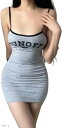 タイトワンピース レディース キャミソール ミニ丈 スリム ロゴ入り ストレッチ ボディライン ショートドレス お出かけ(グレー, L)