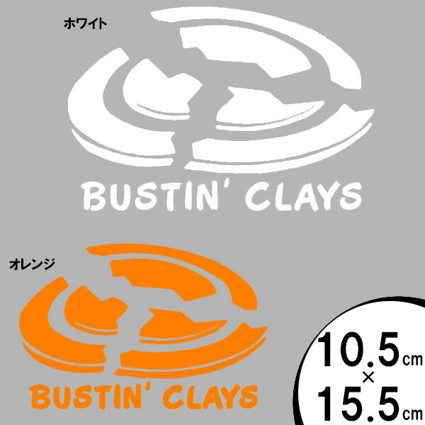 ステッカー クレイターゲット "BUSTIN' CLAYS"切り抜きデカール 縦10.5cmx横15.5cm ホワイト オレンジ ■ シール 銃 シューティング クレー射撃 的 標的 トラップ スキーと 雑貨 小物