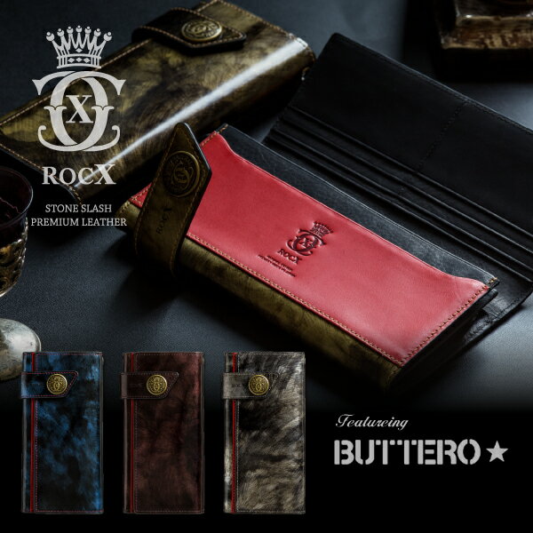訳あり 財布 長財布 メンズ 本革 ブランド かっこいい コインケース 小銭入れ ウォレット ファスナー ボタン コンチョ メタリック レザー ビジネス ファッション 本皮 ブッテロ お洒落 カード 収納 メタリック ハード リアルレザー RocxWalletButton