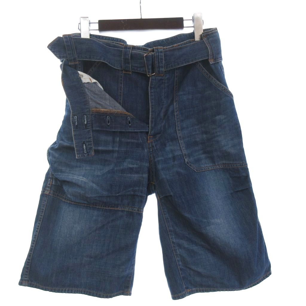 【中古】カバンドズッカ CABANE de zucca デニム ハーフパンツ ショート ダブルウエスト ボタンフライ ベルトデザイン S 青 ブルー メンズ 【ベクトル 古着】 251010