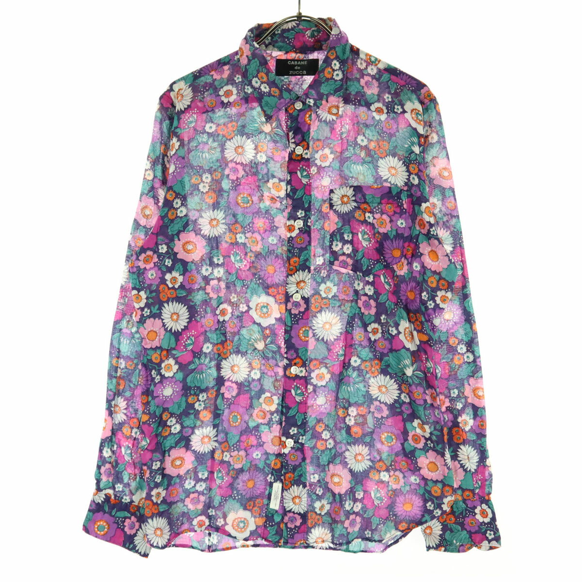 古着 CABANE de ZUCCa カバンドズッカ 日本語 花柄 長袖 コットンシャツ M パープル レディース 【中古】
