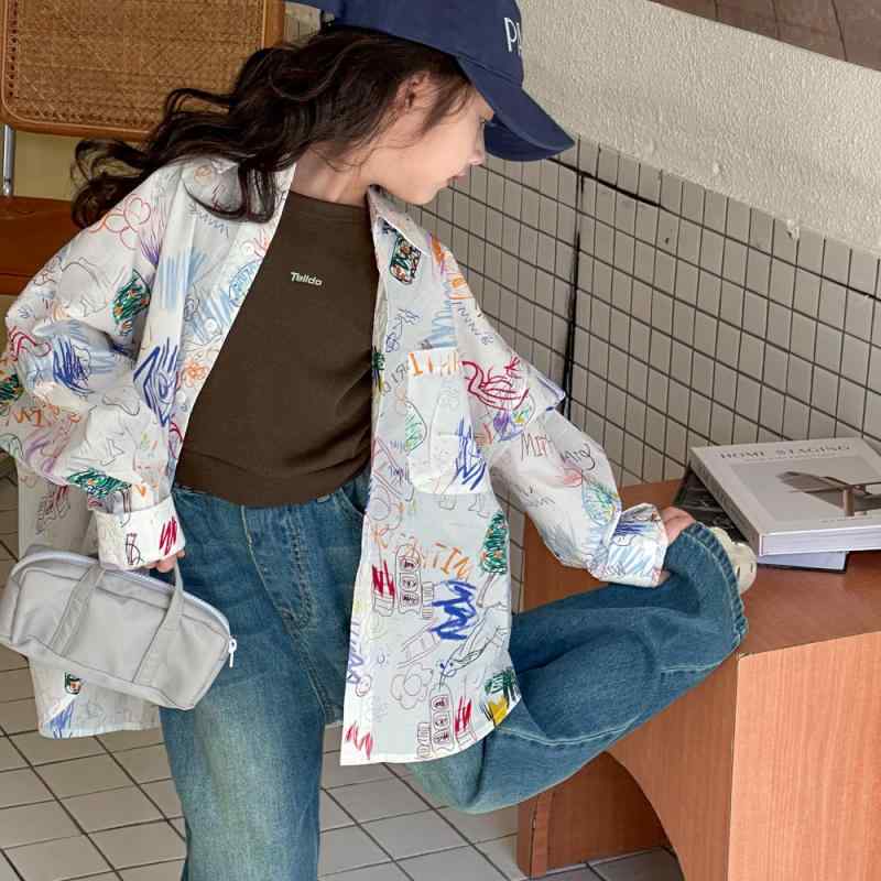 ・カテゴリ: キッズシャツ・性別: 女性・スタイル: 韓国風・主な素材: 綿・ネックライン: 襟付き・袖丈: 長袖・柄: 抽象柄・デザイン要素: 漫画、プリンセス、キャンディ、田園風・カラー: オフホワイト・サイズ展開: 110cm、120cm、130cm、140cm、150cm、160cm