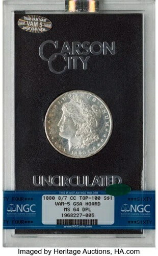 1880 CC モルガン シルバー ダラー 8/7 VAM-5 GSA ホード $1 NGC MS64 DPL CAC トップポップ