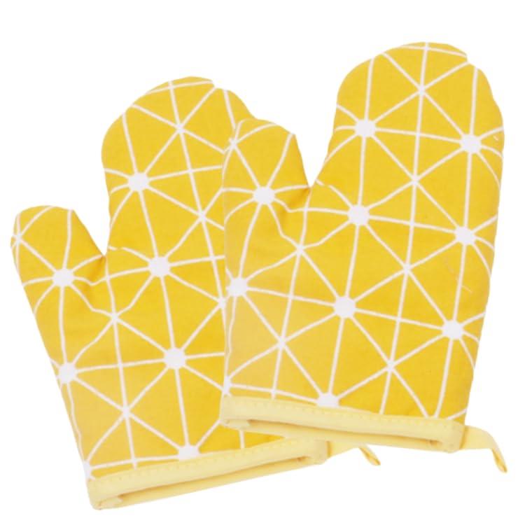 Cadi 耐熱 キッチンミトン 2個セット キッチン ミトン 鍋つかみ オーブンミトン 鍋掴み 耐熱ミトン 鍋 つかみ 北欧風 厚手 オーブン ミット なべつかみ モノトーン (イエ ローチェック)