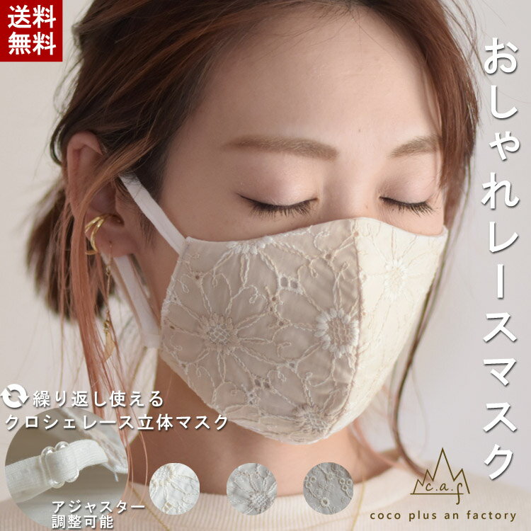 マスク レース アジャスター 日本製 布マスク 立体マスク 繰り返し使える 刺繍 レースマスク おしゃれマスク ファッションマスク スムース 天竺素材 フォーマル 洗える レディース 調整可能 おしゃれ 大人 caf-mk0004【メール便送料無料】