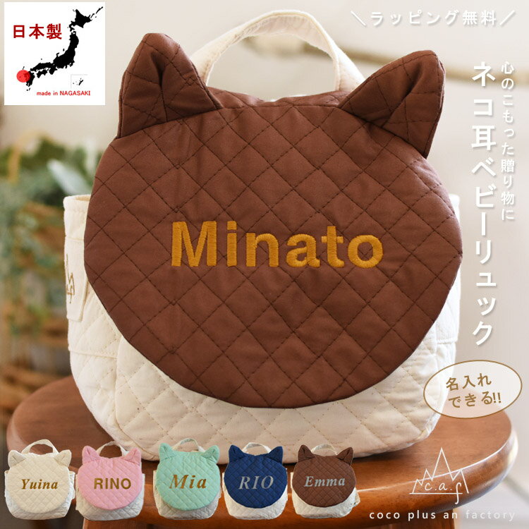 ベビーリュック 一升餅リュック 出産祝い 名入れ 一歳 誕生日 猫耳 ネコミミ 男の子 女の子 動物 キルティング ギフト プレゼント お名前 贈り物 赤ちゃん リュックサック お祝い 背負い餅 一升餅 日本製 キッズ クリスマスプレゼント caf-0031
