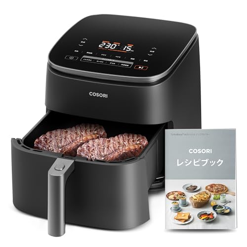 ・【DCモーター搭載】エネルギー効率が高く、静音性に優れたDCモーター搭載。従来品よりも最大38%速く調理できる、貴重な時間を節約できます。COSORIの独自技術により、最高230℃までの温度設定が可能になります。熱風で迅速に調理し、食材の水分と旨みをとじ込みながら、均一に加熱して内部をふんわり柔らかく、外側をパリッと焼き上げます。暑い日に揚げ物を作るストレスも解消!・【95%オイルカット・6L大容量】少量の油で健康的な調理を実現し、しかもカロパが良くて、まるでお店の唐揚げのようなサクサクした食感でおいしい。6Lの大容量で大人数向けの料理を一度に調理でき、パーティーなどのイベントにも対応できます。コンパクトで収納しやすく、キッチンに置いてもインテリアとして映えます。・【発酵機能】バター、ヨーグルト・味噌、酢・・・美容と健康に良い発酵食品を作ることができます。発酵食品で腸内環境をサポートしながら、日々輝く自分へ。・【9+1の多彩な機能】揚げ物から焼き物、ドライフード、ベイク、ロースト、グリル、保温、解凍、再加熱、発酵までさまざまな料理が可能。様々な料理を簡単に調理でき、コスパも抜群です。はじめてのかたでも簡単に使えるシンプルな操作で、ストレスフリーな調理を実現します。夫婦で一緒に、そして子どもと一緒に楽しみながら料理する、しかもペットフードを手作りできます!・【料理研究家コラボレシピ特典】Nadiaで活躍する料理研究家今日のおうちごはんさん、中村りえさん、豪ノ皿さんとの共同レシピやCOSORIの専門シェフが開発されたオリジナルレシピなどの特典レシピ本が付属しています。さらに、COSORI専属オンラインレシピでダイエットにうれしいレシピ、家族が喜ぶおいしいご飯のレシピなど100種類以上のレシピをオンラインでチェックできます。