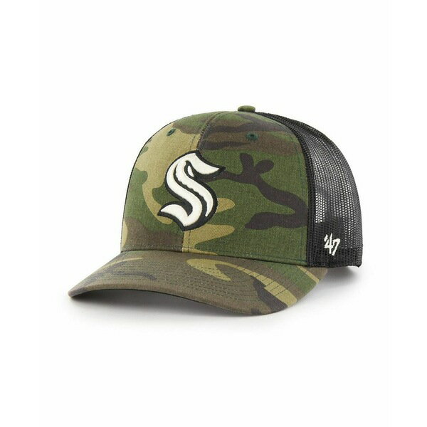 47ブランド メンズ 帽子 アクセサリー Men's Camo, Black Seattle Kraken Trucker Snapback Hat Camo, Black