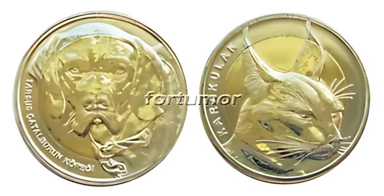 トルコ 2021 セット 2 個 CARACAL と DOG 1 Kuras バイメタル UNC コイン