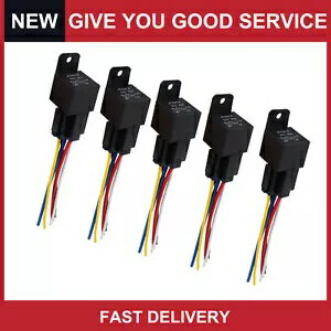 ユニバーサル 24V 40A SPDT カーリレー 5 ピン 5 ワイヤー ハーネスソケットプラグ付き 5 個パック Universal 24V 40A SPDT Car Relay 5 Pin 5 Wires w/ Harness Socket Plug Pack of 5