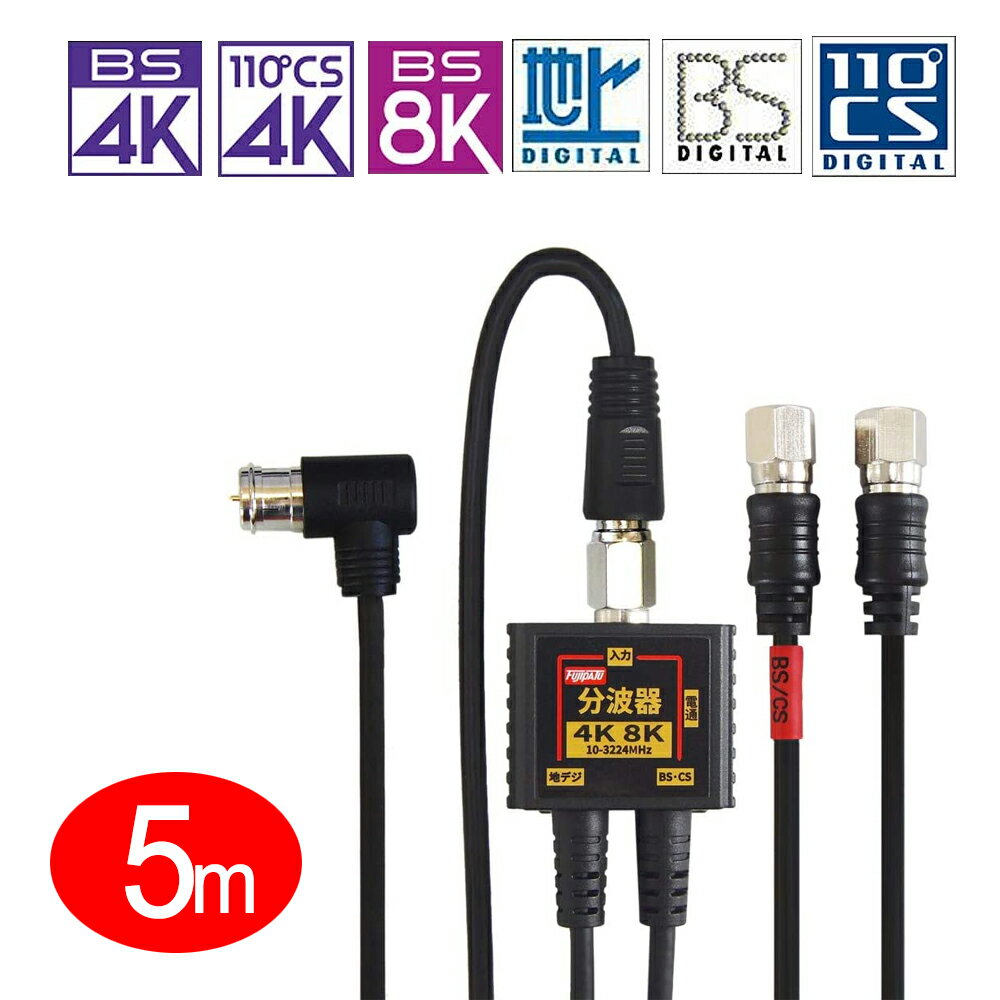 アンテナ分波器 ケーブル0.2m一体型2K4K8K放送対応 地デジ/BS CS/CATV対応 [5m入力ケーブル1本付]ブラック7716BK[FF4877BK+FF4816BK][ニッケルメッキ][W]