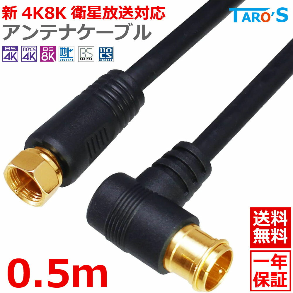 アンテナケーブル 0.5m 50cm F型 コネクタ ネジ式 ⇔ F型 コネクタ ネジ式 2K 4K 8K対応 テレビ アンテナ 同軸ケーブル TV 配線 BS CS CATV 地デジ 衛星放送 黒 ブラック 4CLF-005BK 送料無料