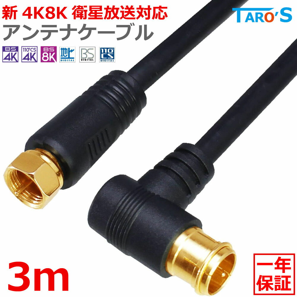 アンテナケーブル 3m L型コネクタ ⇔ F型コネクタ ネジ式 2K 4K 8K対応 テレビ アンテナ 同軸ケーブル TV 配線 BS CS CATV 地デジ 衛星放送 黒 ブラック 4CLF-03BK