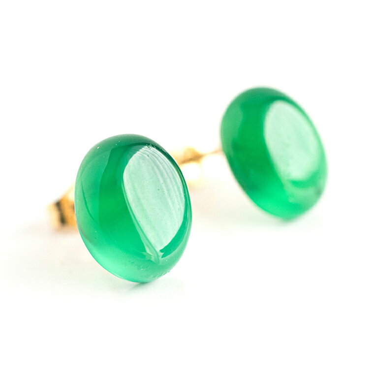 CAVO グリーンオニキスのカボションスタッドピアス 14KGF オーバル10×8mm ゴールドカラー 両耳用 天然石 日本製 パワーストーン レディース 女性用 誕生日 プレゼント ギフト 20代 30代 40代 50代 【楽天倉庫より自動出荷】