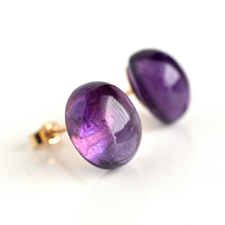 CAVO アメジストのカボションスタッドピアス 14KGF オーバル10×8mm ゴールドカラー 両耳用 天然石 日本製 パワーストーン レディース 女性用 誕生日 プレゼント ギフト 20代 30代 40代 50代 【楽天倉庫より自動出荷】