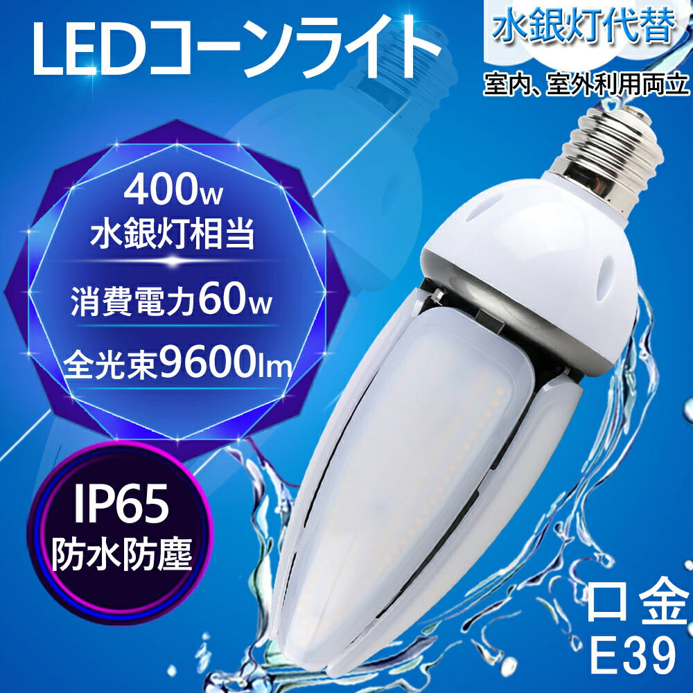 水銀灯交換用 LEDコーンライトトウモロコシ型 400W水銀灯相当 E39通用口金 60W 9600LM IP65防水防塵 密閉形器具対応 360度広配光タイプ コーン型 水銀ランプ 【水銀灯やHPS・CELより省エネ80%】 E39ソケット兼用 工場、倉庫、街灯など敵合