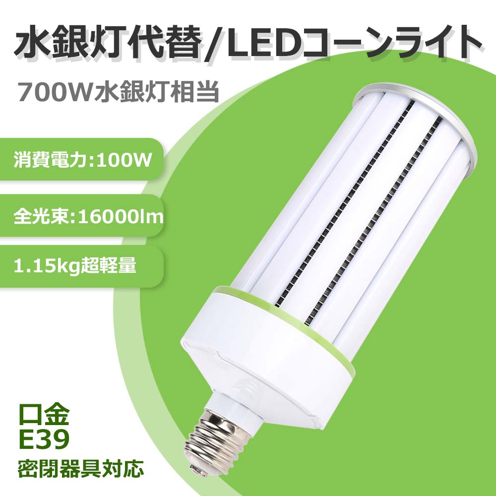 水銀灯 LED 水銀ランプ 700W 相当 E39口金 密閉型器具対応 LED コーンライト LEDライト 消費電力100W 全光束16000lm コーン型 水銀灯交換用 1.15kg 超軽量 360度広配光タイプ 水銀ランプ 【水銀灯やHPS・CELより省エネ85%】 E39ソケット兼用 工場、倉庫、街灯など適合