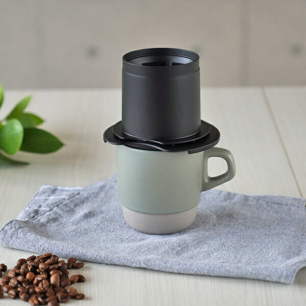 商品情報商品の説明商品紹介 マイカップで使える『ペーパーレスドリッパー』 円すい型のステンレスメッシュフィルターにより、コーヒー豆に含まれるオイルやアロマをしっかりと抽出できるので、ペーパーフィルターに比べ、まろやかで深みのある味わいに コーヒーの旨み成分のひとつであるコーヒーオイルが抽出できる特殊ステンレスメッシュを採用したコーヒー本来の独特なアロマを楽しめます 様々なサイズのカップに対応。アタッチメント付きなので、お手持ちのマグカップに合わせて使えます 口径5~10cmのカップに使用できる ドリッパーの内側にコーヒー粉用の目安となる目盛りが付いてる ドリッパーの裏側から水をあてれば珈琲粉が簡単に洗い流せる ●マイカップで使える『ペーパーレスドリッパー』 ●ペーパー不要で本格アロマ ●ペーパーフィルターを使わず、そのままドリップできる。コーヒーの旨み成分のひとつであるコーヒーオイルが抽出できる特殊ステンレスメッシュを採用した。コーヒー本来の独特なアロマを楽しめる ●様々なサイズのカップに対応 アタッチメント付きなので、お手持ちのマグカップに合わせて使える。口径5~10cmのカップに使用できる ●ドリッパーの内側には目盛りが付いてる ●ドリッパーの裏側から水をあてれば珈琲粉が簡単に洗い流せる主な仕様 サイズ:9.7x9.3x7.5cmbr本体重量:120gbr素材・材質:ポリプピレン・ステンレスbr生産国:日本