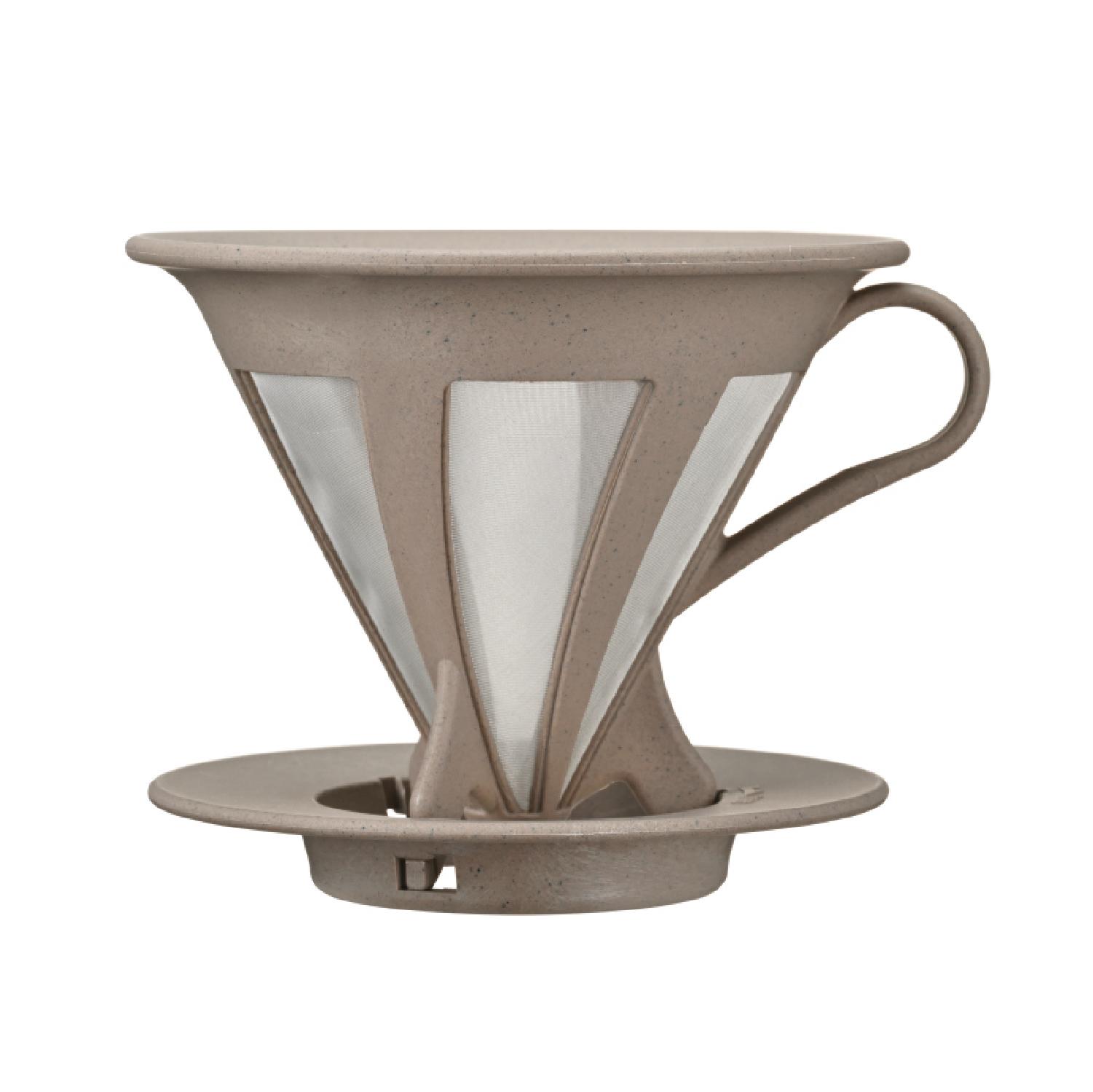 ■メーカー希望小売価格はメーカーカタログに基づいて掲載していますペーパー不要でコーヒーアロマをしっかり抽出 ●ドリッパー内側には1~4杯の目安目盛りが付いているので、計量なしでOK! ●コーヒーの旨み成分のひとつであるコーヒーオイルが抽出できるステンレスメッシュを採用しました。 ぺーパーフィルターで抽出したコーヒーとはひと味違う本格アロマが楽しめます。 ●ぺーパーフィルターを使用しないので経済性アップ!環境にもやさしいドリッパーです。 ●フィルター部分と台座が取り外せるので、洗浄も簡単です。 【仕様】 サイズ:幅121×奥行135×高さ105(mm) 材質:フレーム:ポリプロピレン メッシュ部:ステンレス ※1~4杯用