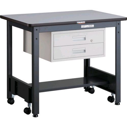 ■TRUSCO 中荷重作業台(500kg)CFW型 900X750XH740 2段引出付 ダークグレー色 CFWP0975F2(2779676)[法人限定][外直送元]