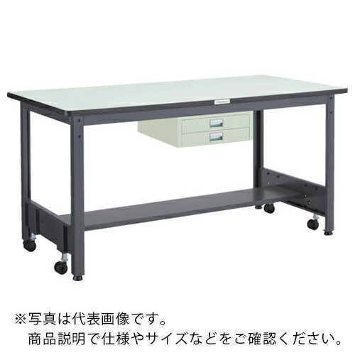 トラスコ中山 CFWP型作業台 1800X900XH740 薄型2段引出付 CFWP-1890UDK2 1台●移動に便利なキャスター内蔵の作業台です。●コンパクトな2段引出し付です。●引出しは使い勝手に応じて任意の場所に取り付け可能です。●作業台にキャスターが取り付けてあるため、移動が必要な際には簡単に移動することができます。また、作業時にはアジャスターにより固定することが可能です。●天板材質:ダップ化粧●間口(mm):1800●奥行(mm):900●高さ(mm):740●脚部カラー:ダークグレー●引出し:薄型1列2段 UDK-002 W●下棚:AEWLT型(1枚)●均等荷重(kg):500●色:ダークグレー●引出し内寸(mm)間口×奥行×深さ:393×395×45●キャスター許容荷重:50kg/個●キャスター降下時の高さ:約754mm●アジャスターねじサイズ:M16×2.0●アジャスター調整範囲:20mm●下棚:AEWLT型(1枚)●材質/仕上:本体/スチール●注意:移動の際には台の上に物をのせないでください。●車上渡しのため、お客様での荷降ろしが必要です。●原産国:日本●コード番号:466-8006