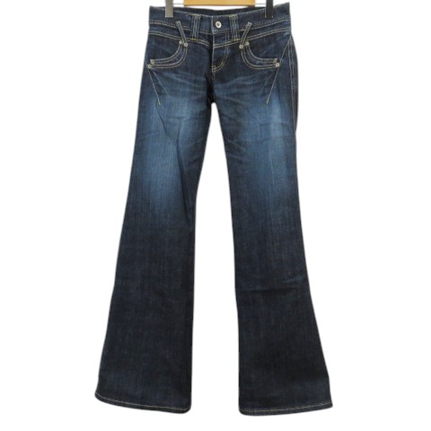 【中古】チェルシーガーヴ CHELSEAGARE フレアパンツ デニム ジーンズ 26 紺系 ネイビー ローライズ デザインファスナー レディース 【ベクトル 古着】 251215